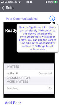 GigaPrompt Pro Users can AirPrompt content to up to six nearby Peers.